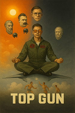 In the grand theater of Western metaphysics, Top Gun (1986) emerges not so much as cinema but as a Platonic allegory performed in aviator sunglasses. Maverick, our leather-jacketed Socrates of the skies, is forever torn between eros for Goose (the only relationship with actual tenderness) and a vaguely defined duty to the military-industrial complex. Nietzsche would call him the Überpilot, soaring above the herd, except the herd, in this case, is also flying $30 million machines at Mach 2, which complicates the metaphor.